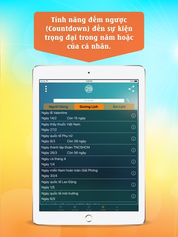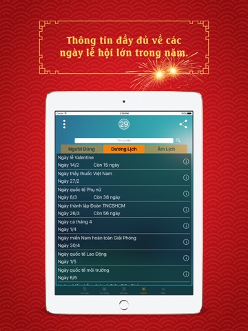 theo dõi các ngày nghỉ lễ, sự kiện thuận tiện và nhanh chóng