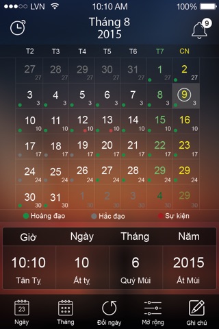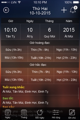 -Lịch Ngày-Tháng-Năm: Chi tiết từng ngày, từng giờ tốt, giờ xấu, việc nên làm, không nên làm, tuổi Xung khắc, hướng xuất hành hợp tuổi