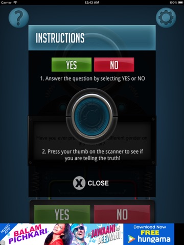 Disclaimer: This app is purely for entertainment purpose only. It does not really detect the Truth or Lie and it is just for pranks!