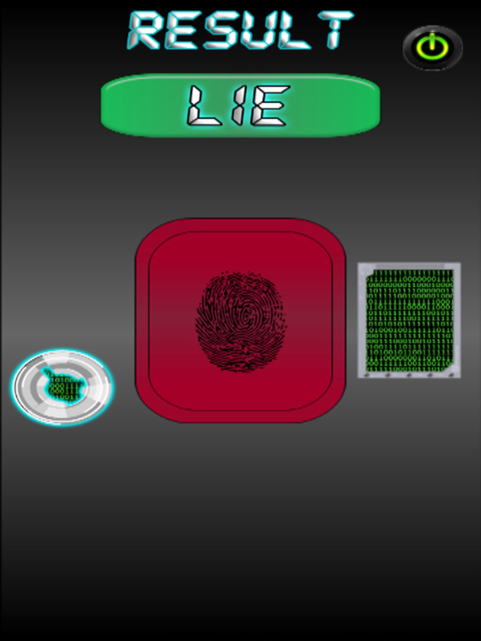 When the simulated scan begins, a ray will scan the fingerprint of your friends. Custom drawn nice animations help make for a great prank. First - place your finger on the scanner panel, then wait while a laser scans your fingerprint and when analysis is complete, the detector will provide an answer to your friend if they are telling a truth or are they lying.