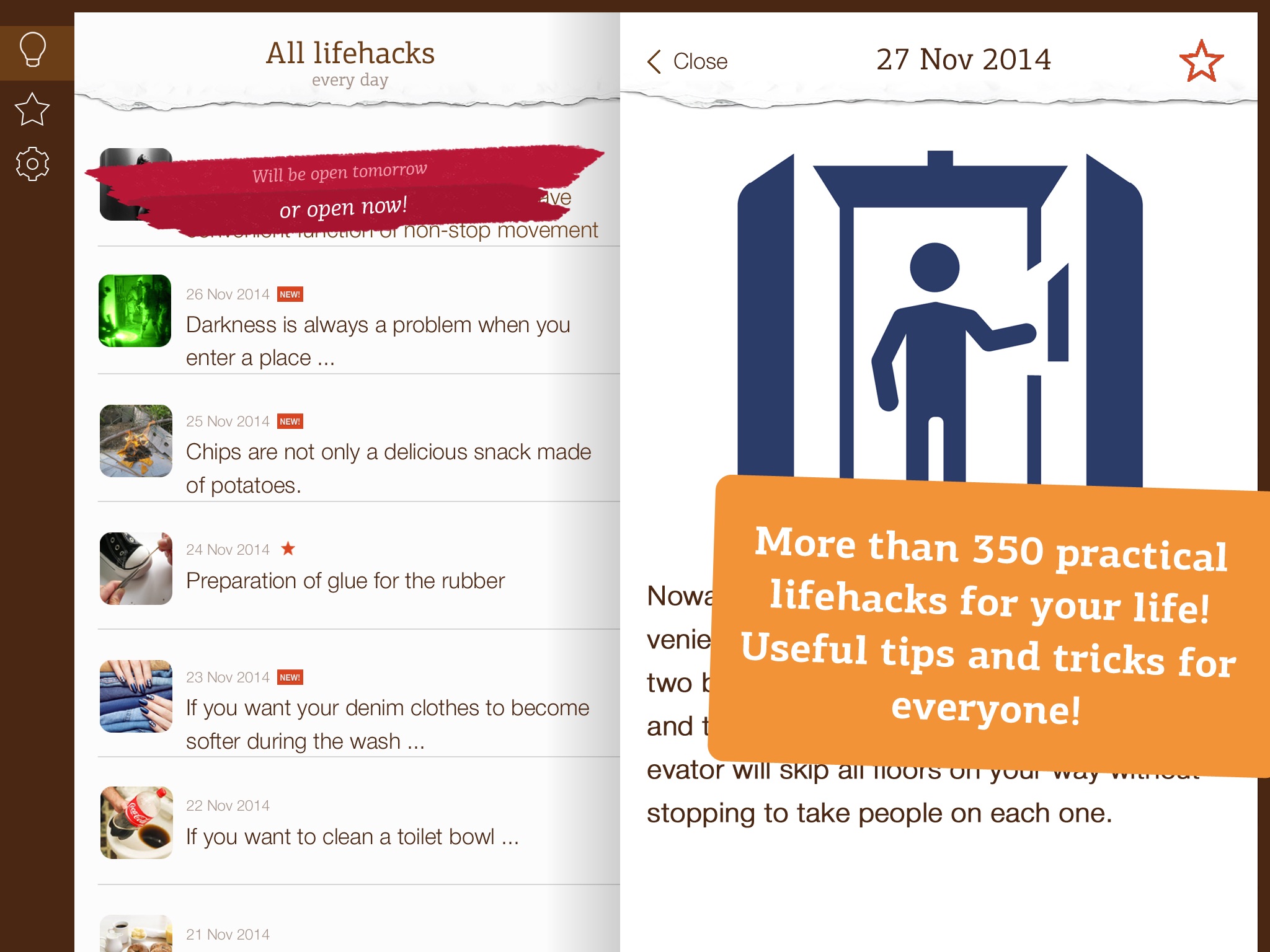 Perhaps this is one of the most useful applications that you have ever seen. Its interesting, unusual and free! There is a huge, daily updated database of practical recommendations on various themes. There are only the most effective ideas.