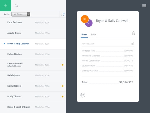 Partner with your clients to help quantify their need for life insurance. Guides you through a conversation that focuses on four key areas: Immediate Cash Needs, Income Continuation, Mortgage Fund, Education Fund.