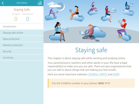 Designed to increase knowledge of e-safety and develop skills for working with online resources, each section guides users through the merits and pitfalls of using the internet, offering advice on how to protect against potential threats. Topics include: critical thinking and working, identity and data protection, social networks, cyber bullying, and netiquette.