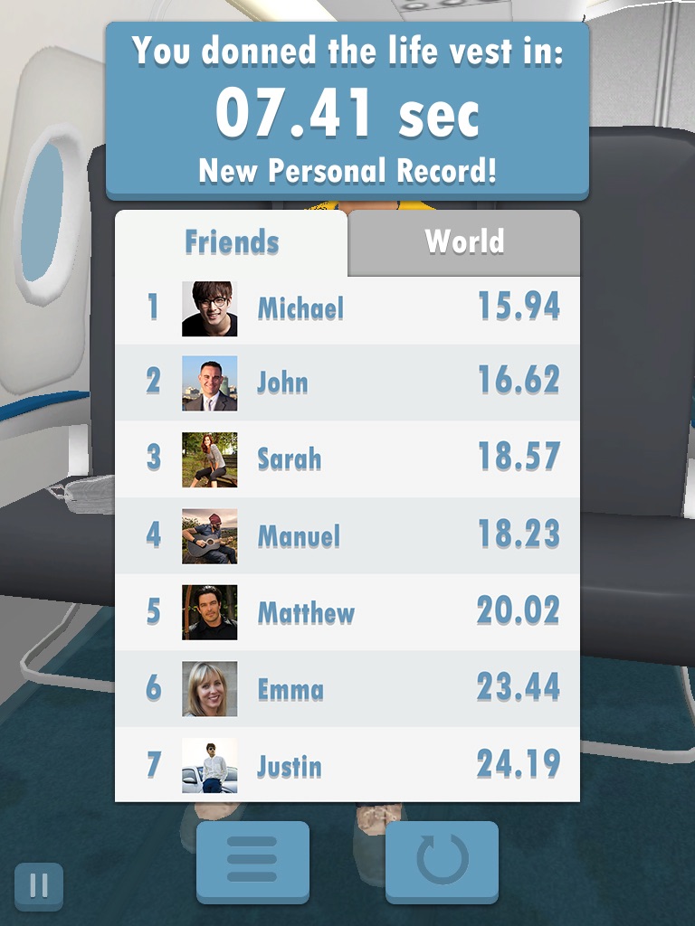 Through three different game levels, you can interact with the game character to make it wear the life vest properly and to hopefully jump out of the plane alive. You can also face time challenges and compare your results with those of your friends and other players.