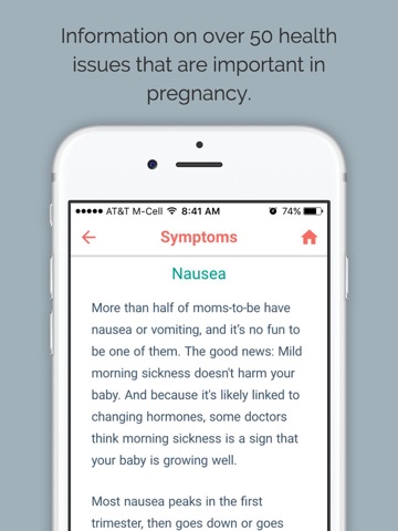 • Look up symptoms and learn about health issues in pregnancy
