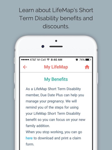 LifeMap Due Date Plus can help you understand symptoms or issues that arise throughout your pregnancy, giving you real-time health advice, and a customized action plan. The plan can include talking to your health provider about an issue, calling a resource in your area, enrolling in a pregnancy management program offered by your health plan, or using one of the in-app tools to check your weight or take time to relax.