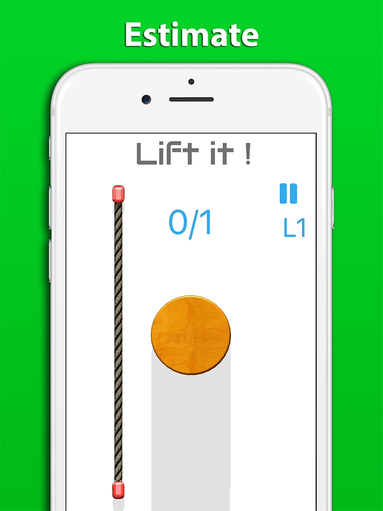 ◉ Touch and hold to make the rope longer and match the perimeter of wood log in different shapes.