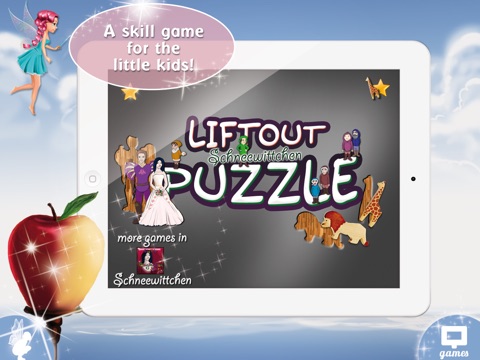 This application includes lift out puzzles from the 4-lingual interactive fairy tale for kids Schneewittchen (Snowwhite). The game includes 2 lift out puzzles. The interface is intuitive and understandable for little children.