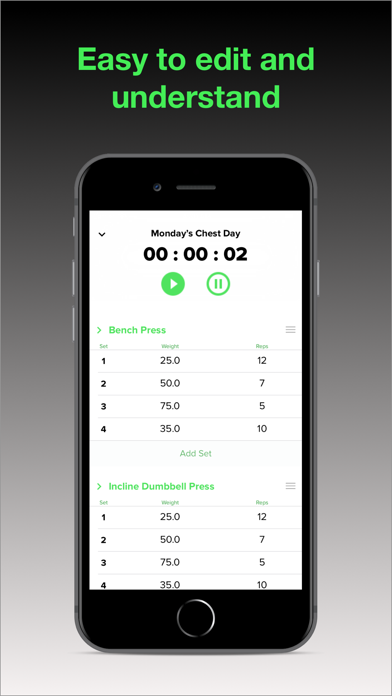 Monitor your weights and reps as you add and remove them from a set.