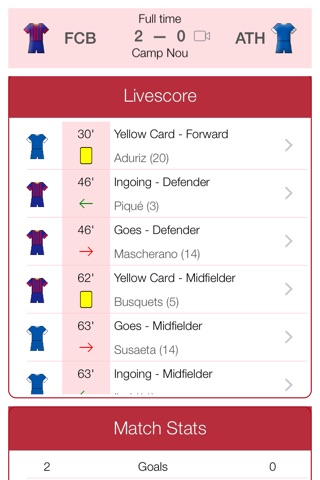 The application "Liga de Fútbol Profesional 2013-2014 - Mobile Match Centre" includes full information about football clubs- lists of players with Statistics.