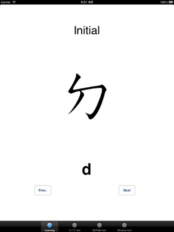 The lite version of the BoPoMoFo flash cards App. The light version includes BPM symbols from "be" to "he" only. Besides that, all other functions work like in full version of the App.