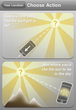 Light Finder makes use of the advanced sensors in your device so you can indicate the desired sun position through intuitive gestures: Orient the device along the path you want the sunlight to fall or aim where you want the sun to be in the sky using a live image from the built-in camera. For highest accuracy you can use the manual compass with or without magnetic declination correction to specify the sun’s bearing.
