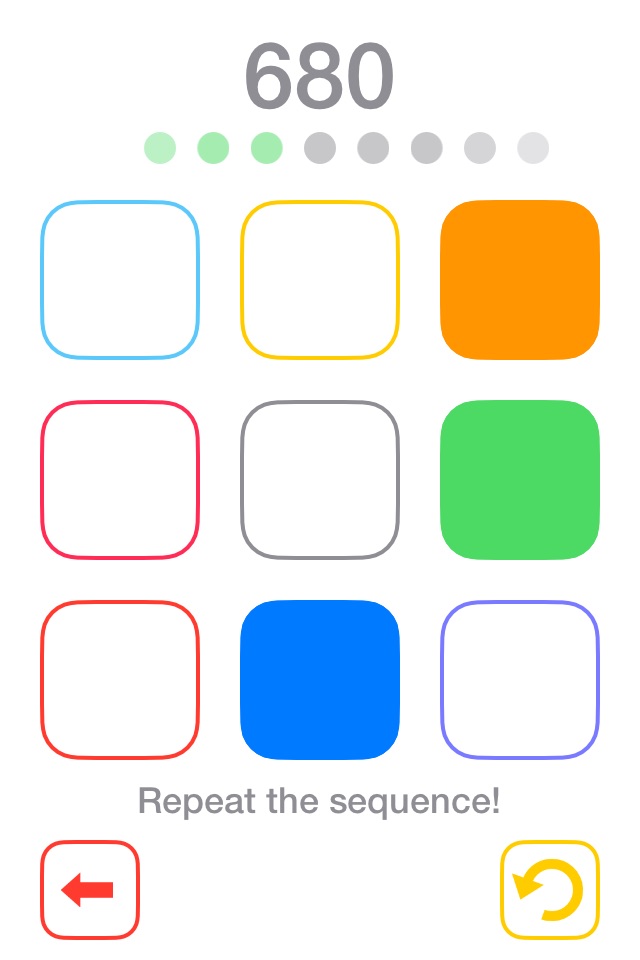 Improve your short-term memory in three different game modes. Depending on the chosen difficulty, ONE, TWO or even THREE lights light up simultaneously.