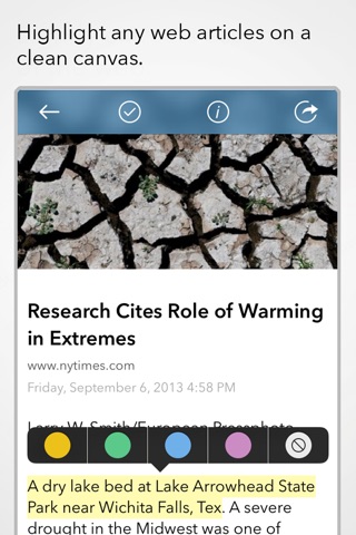 This is just the App I was missing for my iPhone! I am frequent Evernote user and finally I am able to manage my reads in Evernote and have all in one place! This is fantastic! BUT! Please allow me to edit my notes in Evernote and not only in lightly!!! Come on! Dont be evil! I need to add checkmarks or comments to articles. I can not do this in lightly. I can only highlight stuff, which is good but not enough. And there is no ligthly ab for Mac, so... Thanks. As soon as I can do this, you get 5 stars from me :-)