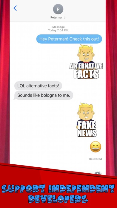 Its time to Make America Great Again with Lil Donald Trump Stickers! The Donald is basically the greatest emoji of all time and our sticker pack has 34 fully animated satirical stickers for you to enjoy. Send them to friends, family, enemies, democrats and republicans. There is no FAKE NEWS HERE! Folks from the US need to buy this pack so that they can share the president with the world! It is for everyone to enjoy!