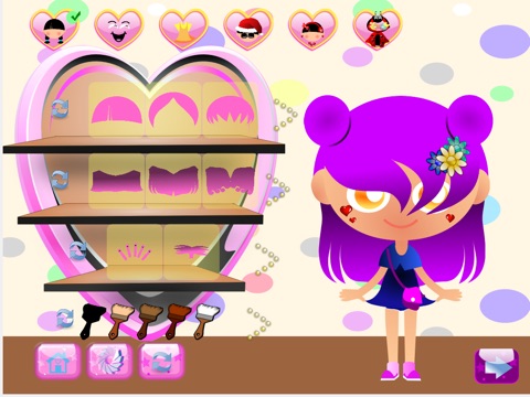 Not only you can dress up the doll and give her various expression but you can also dress up the teddy bear and change it to a pig-zebra or a funny little dinosaur or lady bug. You can change everything in the bedroom and modifying the colors as you want! Makeover everything to the latest fashion trend or in the funniest way.