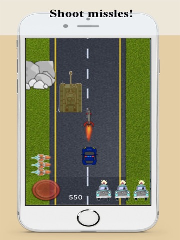 Your police car drives through dangerous streets tracking down bad guys and destroy them with missiles. Avoid the obstacles and collect rewards for extra life and extra missiles. Fun for all ages!