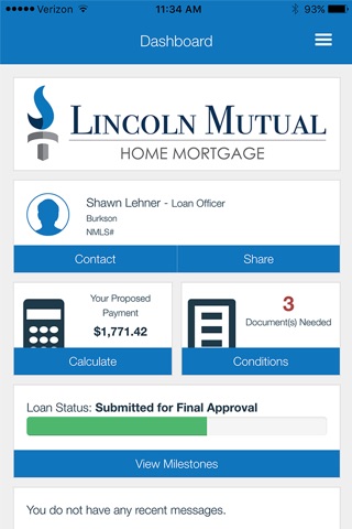 The Lincoln Mutual app allows all 3 parties (home buyer, loan officer, real estate agent) to track the progress of the home loan application process as the Home Buyer meets the milestones and conditions required to get final approval.