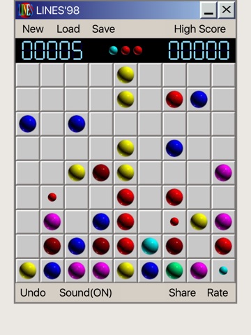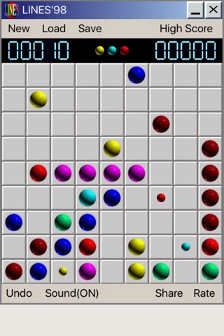 Lines 98 Deluxe is an fun game for killing time. Lines 98 is easy to play but really challenge to master. You have to move same color ball to make horizontal, vertical, cross up or cross down line to make point. The more ball in the same line the more points you get.
