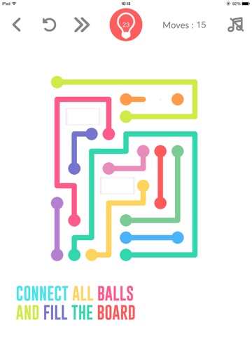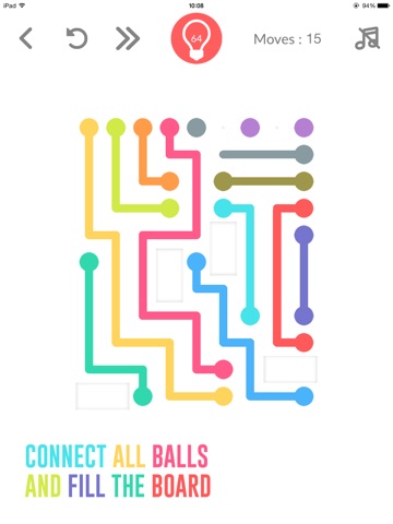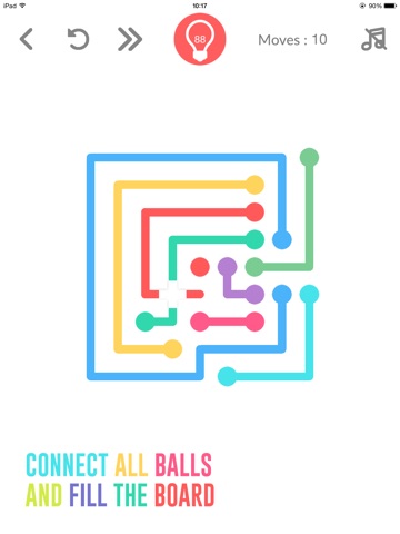 Connect all colors and fill the board. But watch out, lines will break if they cross or overlap! In some levels, therere tubes that 2 balls can come inside.