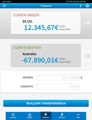 -Realizar traspasos entre cuentas propias de forma sencilla y visual.