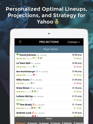 This app is not affiliated with or endorsed by DraftKings, FanDuel, Yahoo Daily Fantasy Sports. All trademarks are the property of their respective owners. This app is for entertainment purposes only. The technology behind LineStar is covered by US patents: 9,751,010, 9,744,450, 10,478,721, 11,660,533 additional patents pending. LineStar® and Check Before You Bet® are registered trademarks of BetFully, Inc.