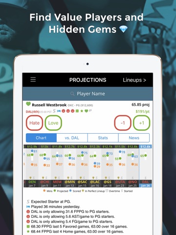 Your Ultimate Companion App for Daily Fantasy Sports - DFS, Player Prop Bets, and Fantasy PickEm Slips.