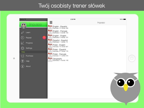 - Możliwość kategoryzacji, edycji słówek i bazy wiedzy bezpośrednio z iPhone lub iPad