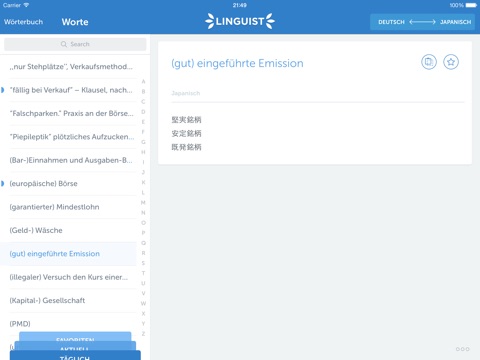 Verbessern Sie sich in Business-Kommunikation, Geschäftskorrespondenz, im Abschluss internationaler Verträge und Abkommen. Dieses Wörterbuch konzentriert sich auf die Sprache, die Sie bei Geschäftskontakten mit ausländischen Partnern tatsächlich benötigen. Dieses Wörterbuch wurde so angelegt, dass es zum detailliertesten Wörterbuch für das wachsende Unternehmen geworden ist und dennoch einfach zu bedienen und zuverlässig ist. Dieses von Fachautoren verfasste Wörterbuch ist eine ideale Anwendung mit korrektem zweisprachigem Tool.