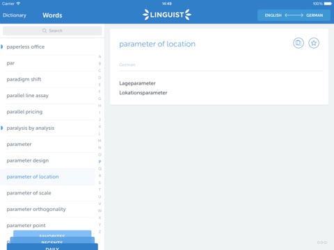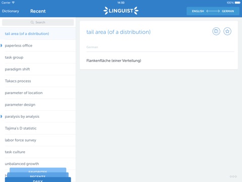 • History of recently viewed words;
