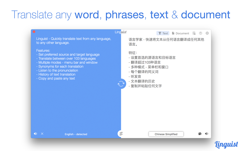Important Note: Linguist needs an internet connection to perform translations.