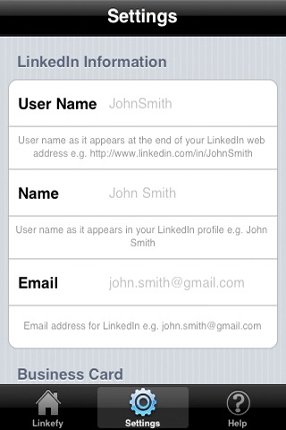 Want to invite a friend on your LinkedIn, Facebook or Twitter accounts. Linkefy is a one touch solution to send friend requests. Now no need to login to your respective accounts and do the hassle of sending invitations from inside the social networks. Just configure usernames for each of LinkedIn, Facebook and Twitter only once on Linkefy. All you need is email address of your friend to send him/her the invitations. You can invite a friend to all three of social networks in a single go or you can choose from either of them. Linkefy also lets you configure your business card and let you send it along with the invitation. You can also send just your business card using Linkefy.