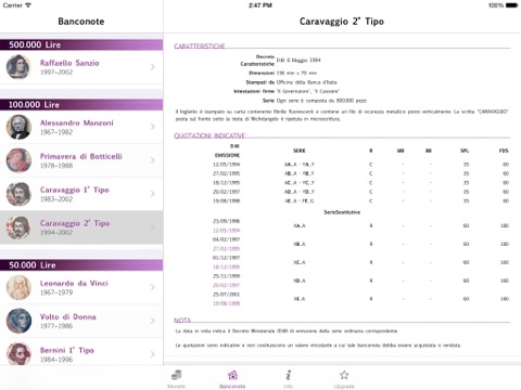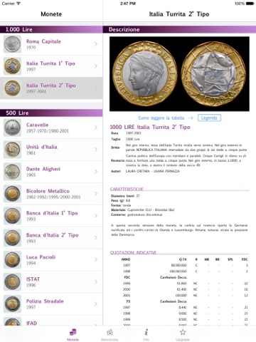 - le didascalie complete di ogni moneta e banconota, con curiosità e notizie