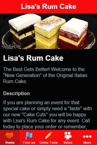 The best Italian Rum Cake in the world! Contact information and links to web site. Call to order or go to web site. Great place to share photos of your special occasion with one of Lisas Rum Cakes! Become part of the Family!