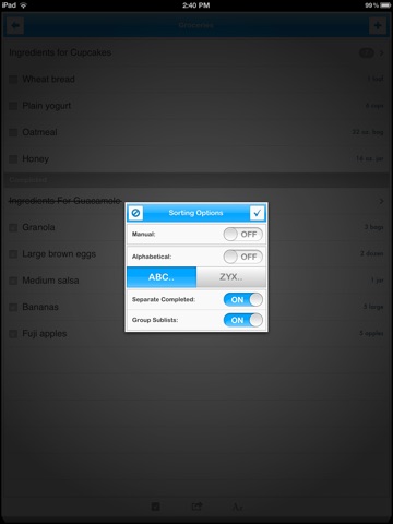 • Sort lists and items alphabetically A-Z or Z-A