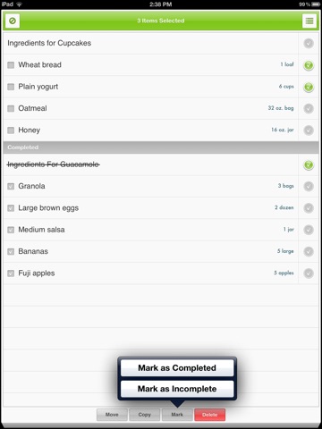 • Mark items as completed or incomplete