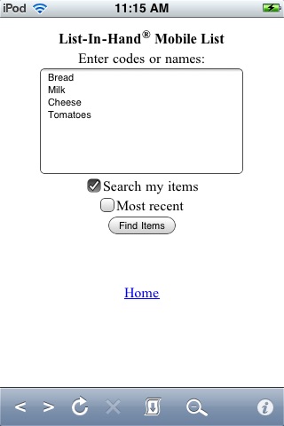 List-In-Hand® Mobile List is accessible from ANY internet enabled device, so you can make important changes and quick additions from anywhere. Also, since Mobile List is internet based service, you can share lists with others. Family members, friends or roommates can make necessary last minute additions to your shopping list which will instantaneously appear on your Mobile List, eliminating those unnecessary return trips to the store to get forgotten items.