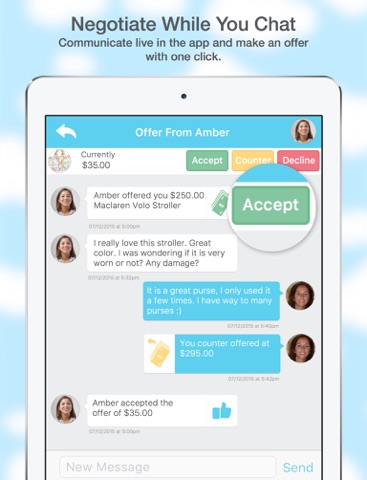 • Negotiate and chat from the app in one screen, making for fun and friendly transactions.