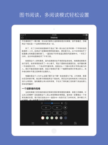 支持epub,pdf,txt格式,更多格式支持开发中。我们重新编写了阅读引擎,把txt,epub阅读体验提升到一个全新的层次.