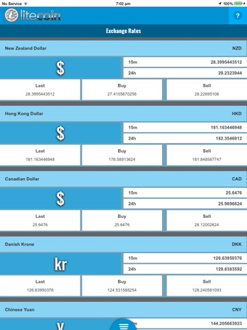 This app displays the real-time Litecoin exhange rates for various currencies with: