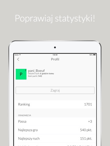 Fajna gra! Bardzo wciaga lecz juz po chwili konstatujesz ze nie rozumiesz mechanizmu uzyskiwania pynktow w rankingu. Bo jak za gre z lepszymi masz wiecej punktow to zn o ile i wg jakuch kryteriow i jaku jest algorytm. Czy system generuje trudniejsze uklady liter dla wyzszych poziomow graczy czy zawsze przypadek.