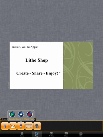 Litho Shop grabs business and social etiquette and pulls it right into the 21st Century! Letterhead, Monarch, Note Cards, & Business Cards, all created by you and used with your choice of Save and Share Features. Even Record a Voice Memo!