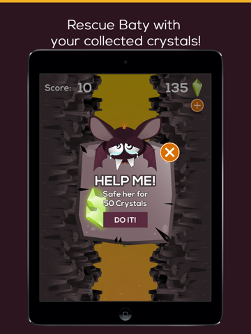 Simply tap on the screen to make Baty fly down the tunnel and collect crystals for points. But mind it, the rocks are the doom of our little Baty – so avoid them at all cost. Time your action, and navigate Baty through the windy tunnel filled with colliding rocks, gush of winds and crystals. Fly down the treacherous path of the tunnel for long enough, and Baty can find special crystals down there. “Little Baty - The abyss” is designed for guaranteed sense of adventure and excitement.