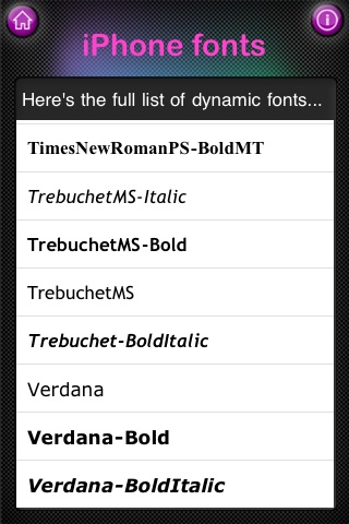 iPHONE FONTS - a full list of dynamic fonts available for iPhone.
