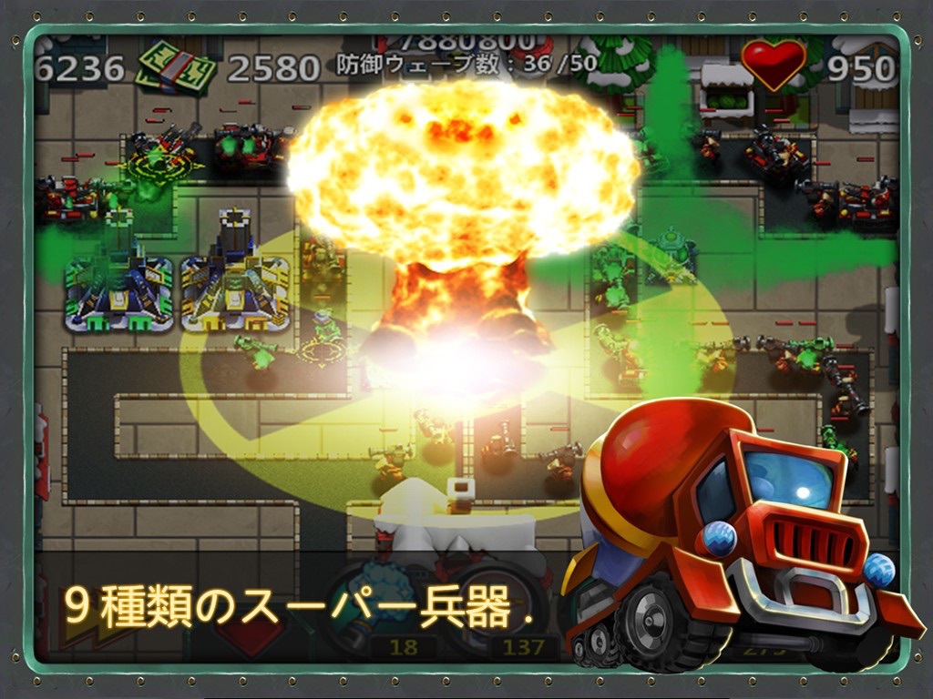 ● 16 types of upgradable towers and coming more! – Laser tower, Sniper-gun tower, Landmine tower, Nuclear tower, and so on so forth.