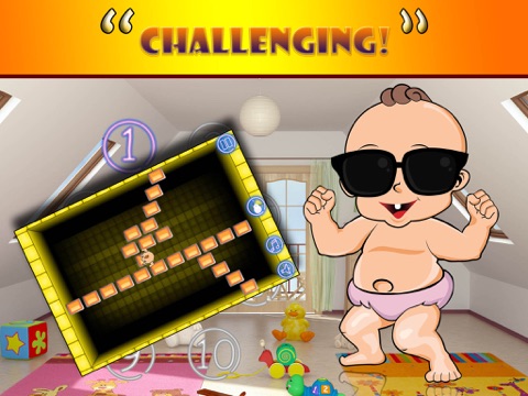 This is the coolest, funniest nursery. Babies are dancing the Harlem Shake and they are challenging you to a cool strategy game. The rules are very simple: The Baby wants to exit the board and you are trying to avoid it. You win when you trap little cutie on one ground item. Sounds easy? Try it and youll see that this little baby knows his stuff. He is going to outsmart you pretty quickly as you move up the levels and stages. But no worries, you can "Nuke" your way to victory by using the bombs. That is not fair, but who cares, right? To get the bombs just watch a quick video. Easy!!!
