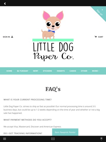 Welcome to the Little Dog Paper Co. app! We are excited to be a part of the app store!