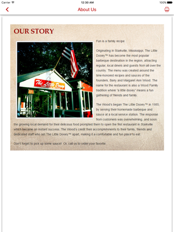 Originating in Starkville, Mississippi, The Little Dooey™ has become the most popular barbeque destination in the region, attracting regular, local diners and guests from all over the country. The menu was created around the time-honored recipes and sauces of the founders, Barry and Margaret Ann Wood.