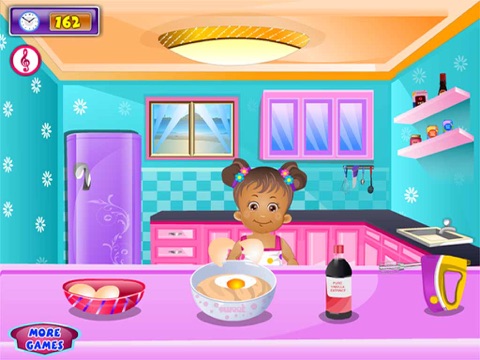 In this cool game baby Daisy wants to do some useful things on her Holiday. She decides to cook for her friend Sony. First she goes to buy the items she need for the cooking, but she needs your help. Go and shop with baby Daisy. At second level baby Daisy have to cook but again she needs your help. Help her to do the cooking. After she cooks the cakes, she will make a strawberry salad, please help her to do the salad. In the thirty levels baby Daisy decorate the dinner table. At the end of the game she is eating the cooked items. Play this fun game and have a cooking time with baby Daisy!