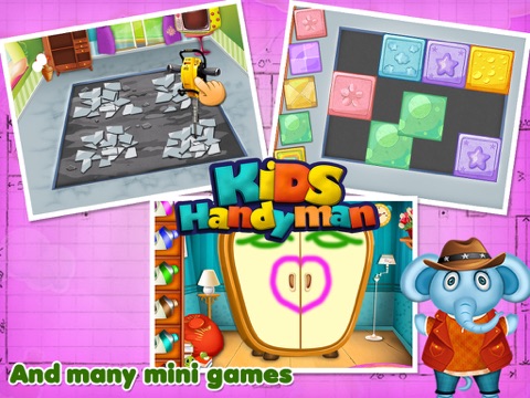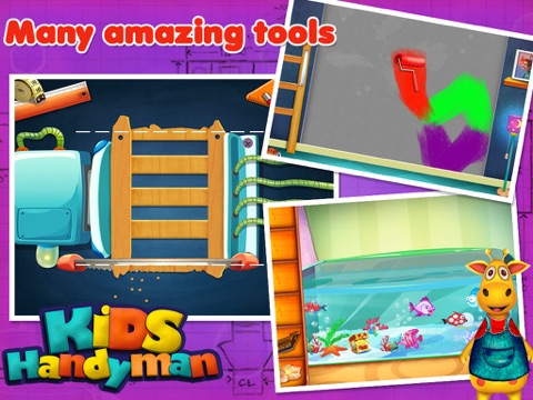 Kids HandyMan by GameCastor just makes full use of full imagination and skills of your kids. Hammers, wrenches, pliers and more are there for your kids to help you with household work from repairing chair to bathtub. There are tons of activities where your kids will help with everything like as fixing chair, assembling bed and show up creative imagination by mixing paints and using different tools to make ventures your own.